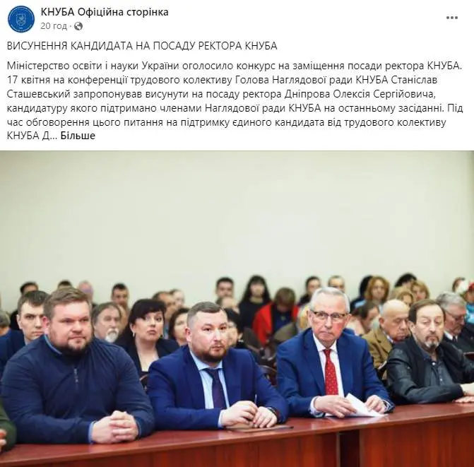 18 квітня ексзаступника голови Офісу Президента Олексія Дніпрова висунули на посаду ректора Київського університету будівництва і архітектури.