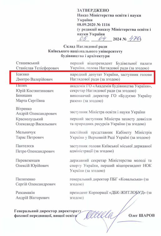 Варто уваги, що у складі наглядової ради досі залишається нардеп, який був обраний від нині забороненої партії ОПЗЖ Дмитро Ісаєнко. Торік НАБУ вручило політику підозру у справі щодо незаконного заволодіння ділянкою у розмірі 8 га у Києві.