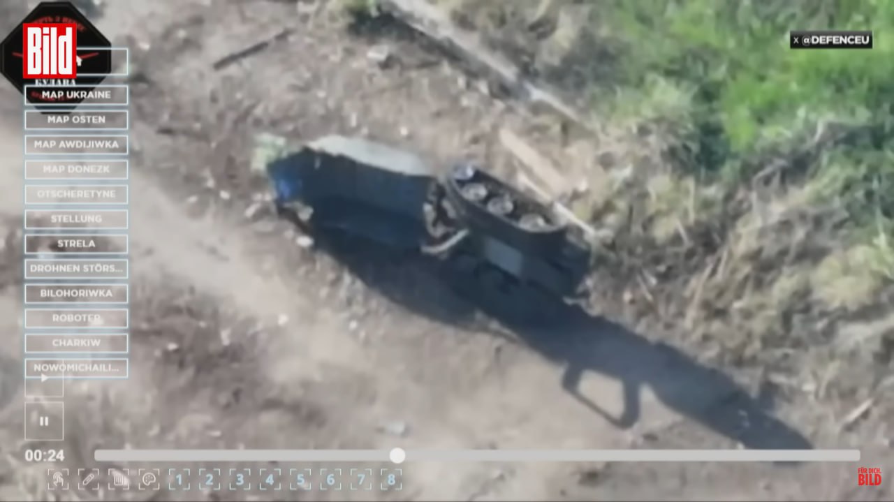 Аналітик BILD з аналізу відкритих даних Юліан Рьопке стверджує, що російські війська слідом за Україною перейшли до застосування наземних дронів на полі бою.