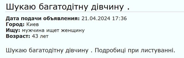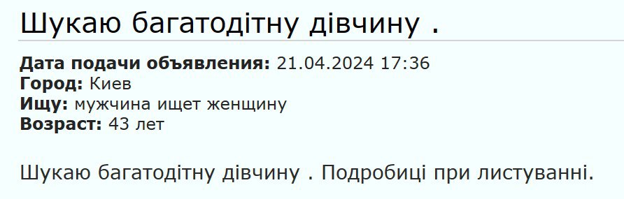 Зважаючи на все, розміщують дані оголошення чоловіки, які намагаються виїхати за кордон на підставі шлюбу з багатодітною дівчиною або жінкою-інвалідом.