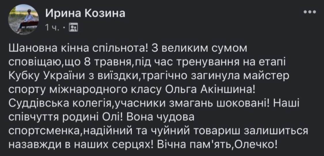 Загинула майстер спорту з кінного спорту Ольга Акіншина