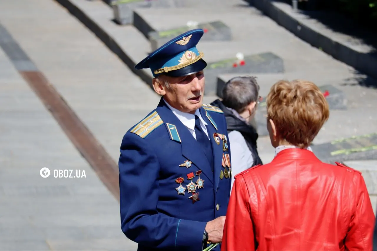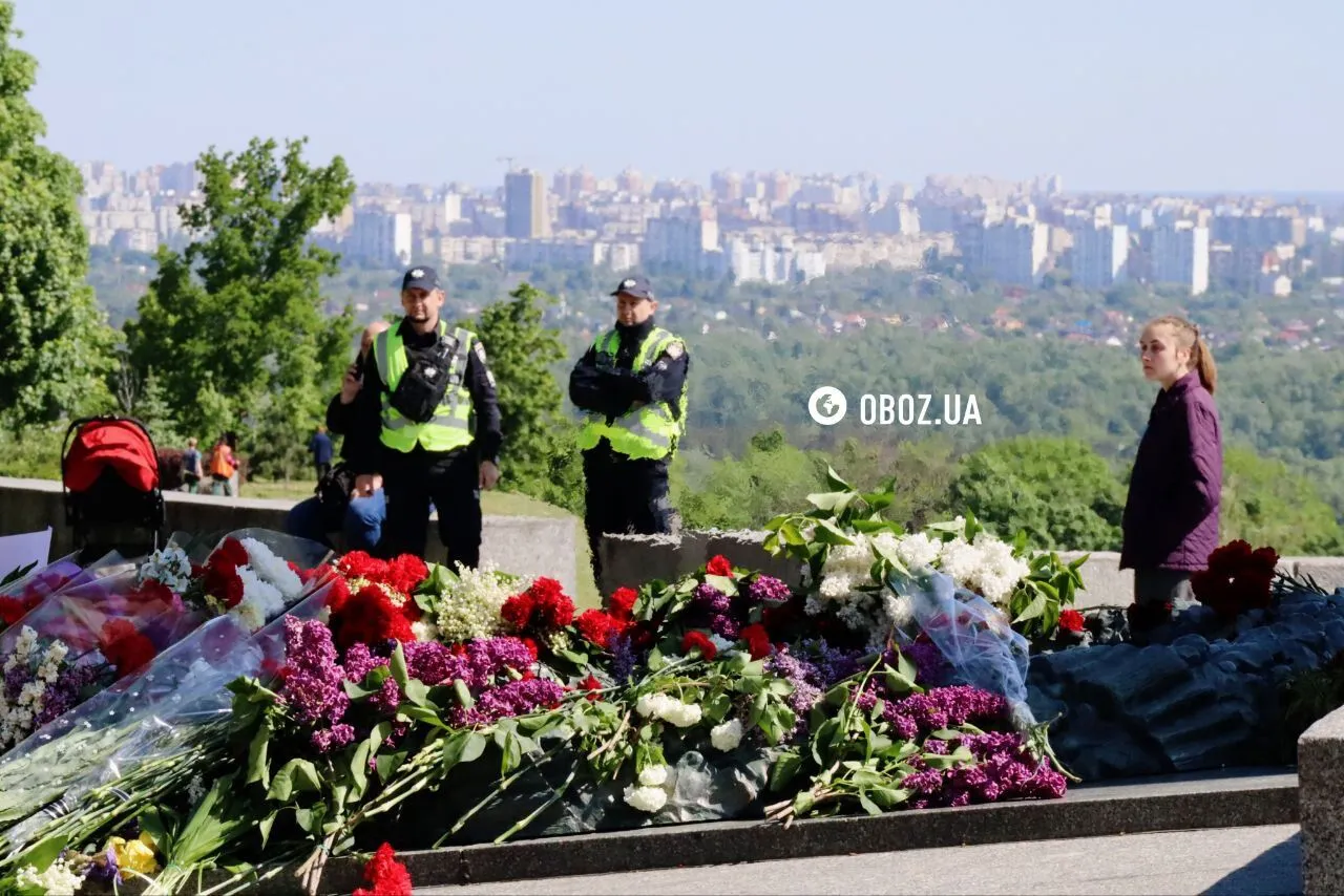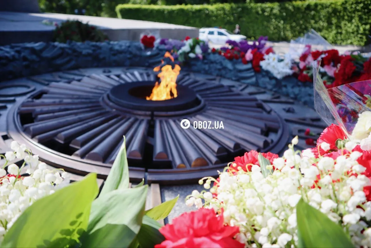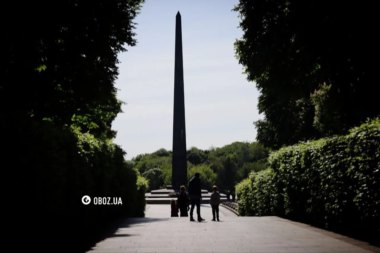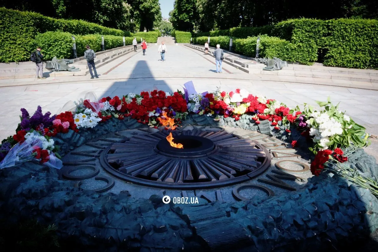 Так, 9 травня, у день, який раніше відзначався як "День Перемоги", дуже мало киян прийшло до Меморіалу вічної слави у Печерському районі. З самого ранку поодинокі громадяни приходили до Вічного вогню, щоб покласти квіти та віддати шану загиблим під час Другої світової війни. Деякі з них фотографувались на місці та одразу йшли.