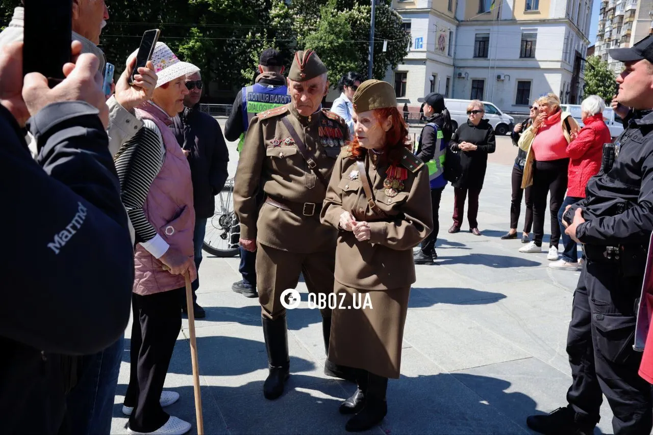 Не обійшлось і без провокативних моментів – жінка та чоловік у військовій формі, схожій на радянську, намагались пройти до монумента. При цьому на їхніх головних уборах була радянська символіка – червона зірка із гербом неіснуючого вже СРСР. Правоохоронці спокійно повідомили порушникам про відповідальність через демонстрацію забороненої символіки. Поліцейські проінформували їх, що вони зможуть пройти за однієї умови – зняти зірки. Проте жінка це робити відмовилась – за її словами, форма належала її матері, а медалі – ювілейні.
