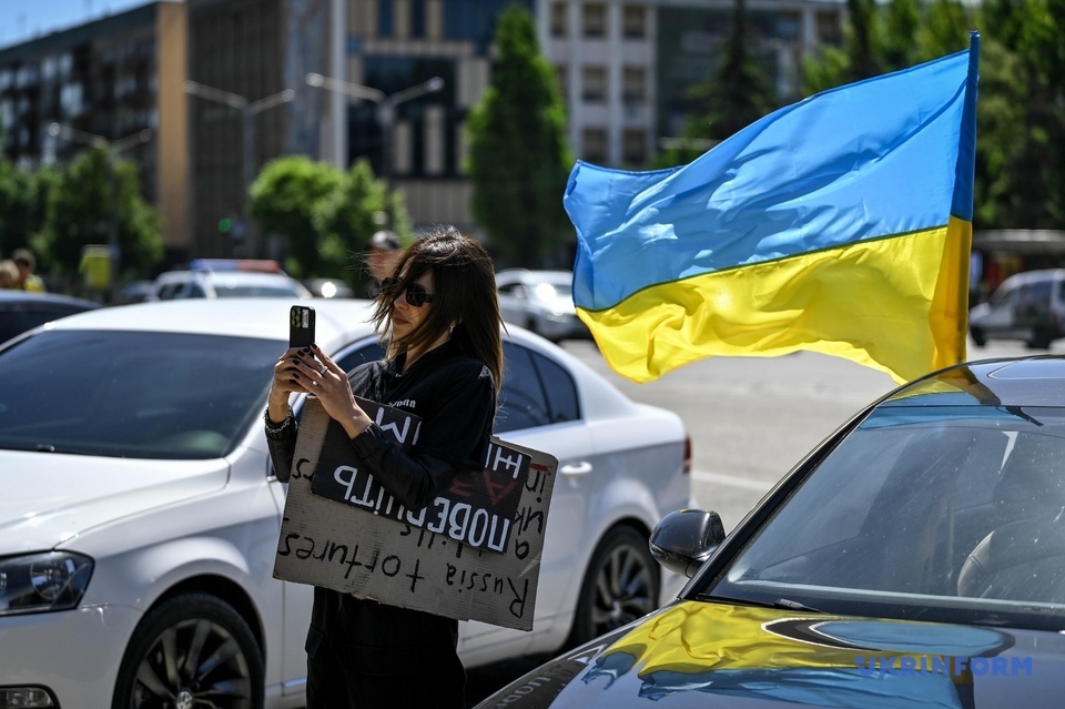 У Запоріжжі, навпроти будівлі обласної адміністрації, у неділю відбулася акція на підтримку полонених оборонців Маріуполя.