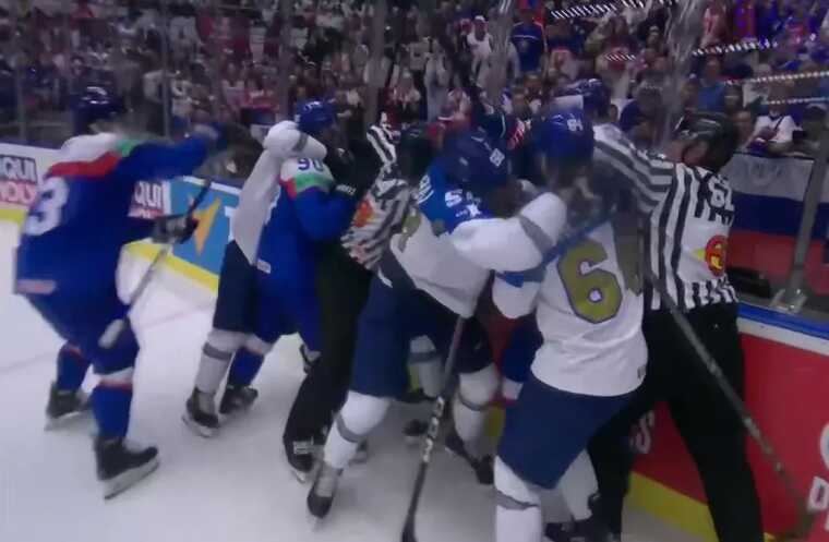 Матч чемпіонату світу з хокею, який з 10 по 24 травня проходить у Чехії, ознаменувався масовою бійкою. Збірні Казахстану та Словаччини вирішили з’ясувати хто з них сильніший не лише у хокеї, а й у боксі.