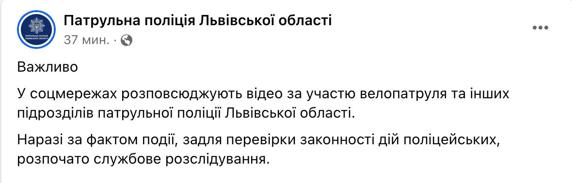 У Львові місцеві паблики повідомляють, що поліція жорстко затримала дівчину, яка їхала велосипедом тротуаром.