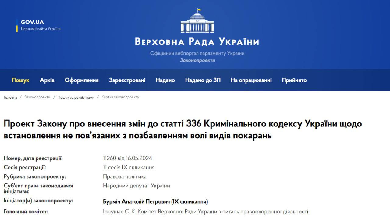 Замість позбавлення волі на строк від 3 до 5 років пропонується встановити штраф від 51.000 до 85.000 грн або громадські роботи на строк від 160 до 240 годин, або обмеження волі до двох років.