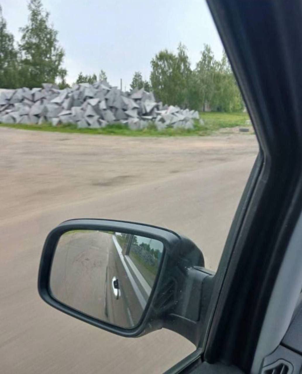 У мережі показали фото, як на Сумщині «зуби дракона», призначені для будівництва оборонних ліній, звалені на узбіччя.
