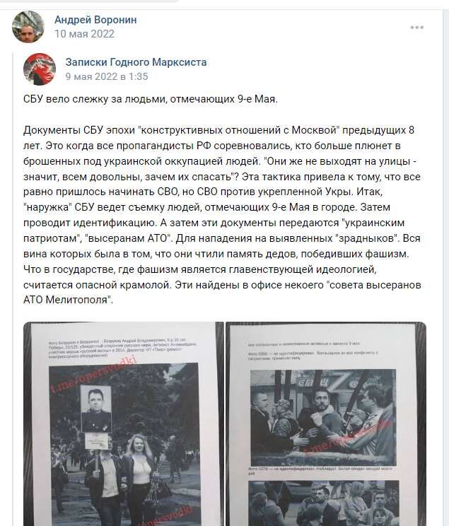 Також 10 травня 2022 року Воронін перепостив на сторінці у соціальній мережі “ВКонтакте” допис із виправдовуванням збройної агресії РФ проти України.