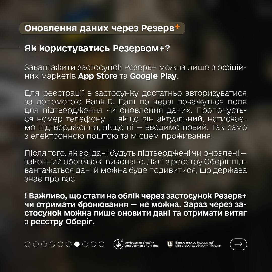 - мобільний застосунок "Резерв+".