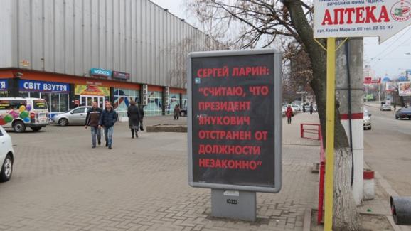 Ще один скандал вибухнув навколо Ларіна уже після втечі Януковича. ЗМІ розповсюдили коментар чиновника на одному з кіровоградських сайтів. Ларін начебто написав, що Янукович був відсторонений від влади незаконно і залишається легітимним президентом. В ЗМІ покотилася хвиля обурення, Ларіна звинуватили у виправдання масових вбивств на Майдані, а в Кіровограді з’явилися сіті-лайти з цією цитатою екс-губернатора. Проте коментар з сайту зник і про скандал підзабули.