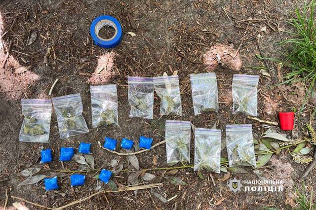 У підлітка вилучили 19 поліетиленових пакетів та згортків, обмотаних ізоляційною стрічкою, із наркотичним засобом. Окрім того, у процесі документування злочину поліцейські встановили місця восьми закладок, які він вже встиг розкласти.