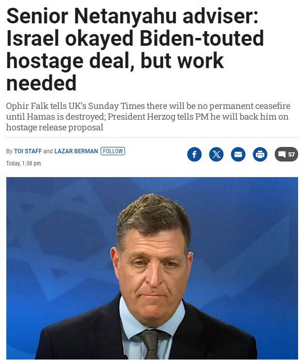 За словами Фалька, пропозиція президента США "не дуже хороша угода", але Ізраїль готовий піти на неї заради порятунку життів заручників.