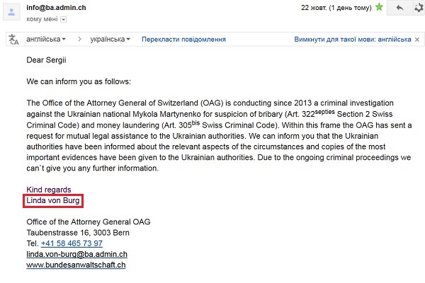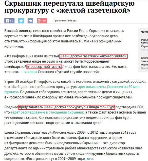 P.S. Показательно то, что уголовное дело против Скрынник российскому РБК подтвердил тот же человек, который подтвердил уголовное дело против Мартыненко – спикер швейцарской прокуратуры Линда фон Бург.