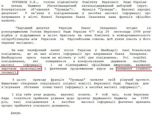 А перед этим, конечно, Лазаренко хорохорился, а Александр Турчинов даже называл его арест в Швейцарии "провокацией" и "расправой":