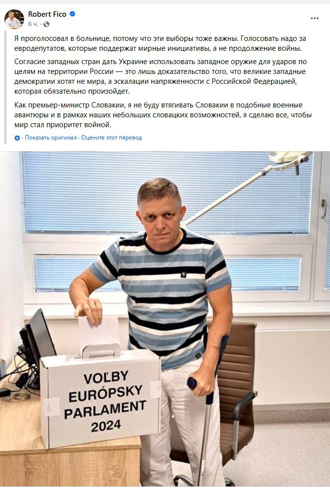 Прем’єр Словаччини Роберт Фіцо, який пережив замах, проголосував на виборах до Європарламенту, які цими вихідними починаються в Європі.
