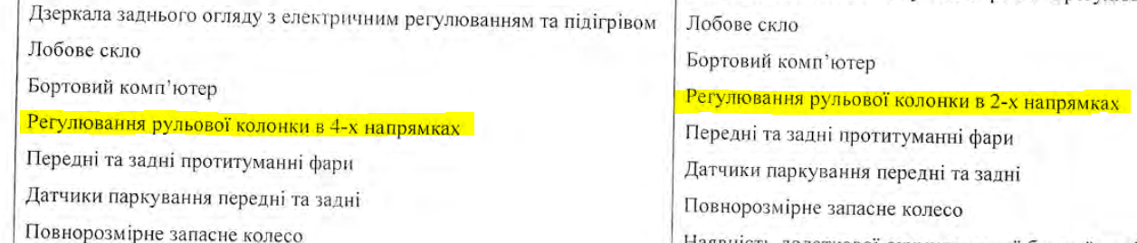 Окрім того, рульова колонка в автомобілів «Автоспецпрому» регулювалась у двох напрямках, а оголошення вимагало, щоб вона регулювалась у чотирьох напрямках.