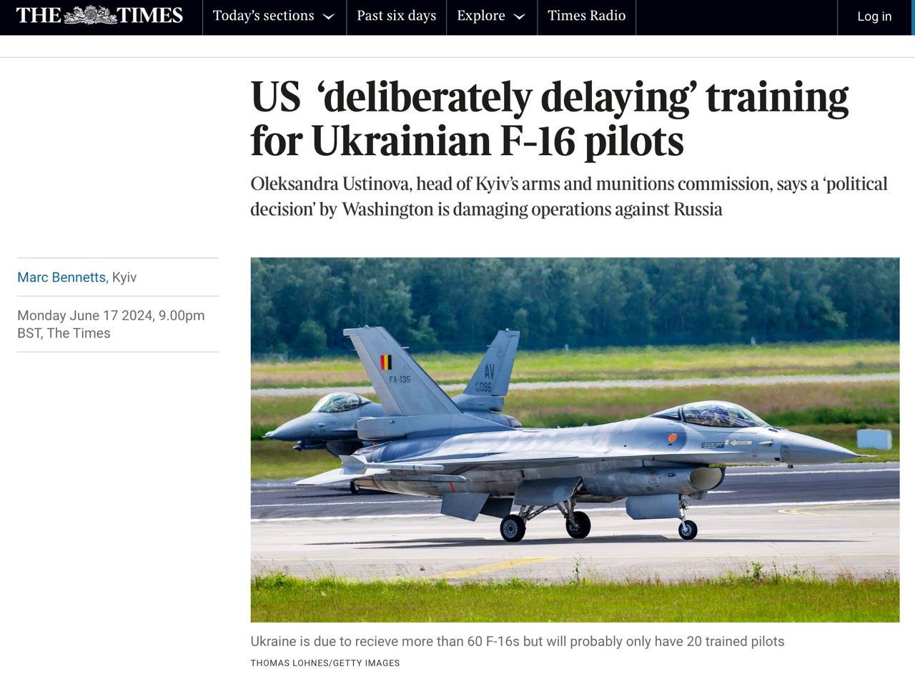 Офіційний представник Пентагону також заявляв, що українські пілоти зазнають труднощів зі знанням англійської мови та програмою польотів, через що "прогрес навчання на літаках F-16 досить мізерний".