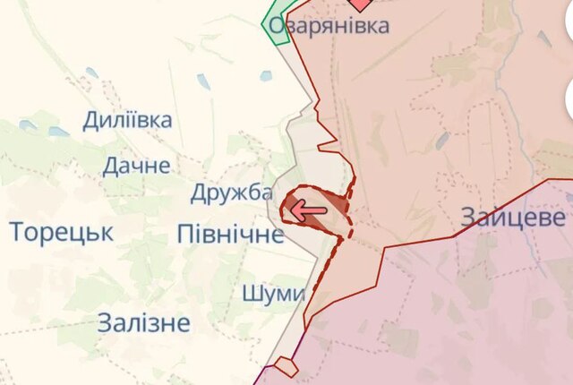 Український військовий паблік DeepState підтверджує просування ЗС РФ на Торецькому напрямку, про що вчора повідомляли російські Телеграм-канали.