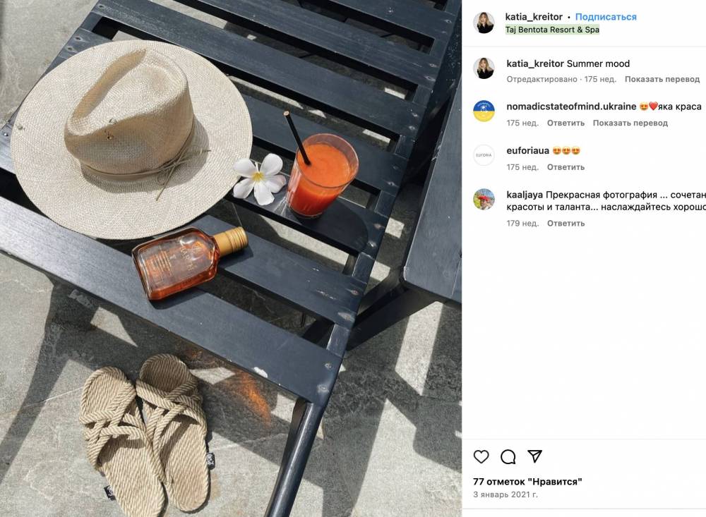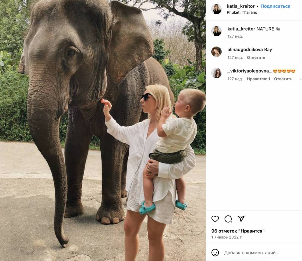 Грудень та січень 2021 року родина проводить на острові Пхукет в Таїланді. Після початку повномасштабного вторгнення Росії в Україну поїздки на деякий час зупиняються, але вже в серпні 2022 року Катерина Крейтор публікує фотографії з Амстердаму та Дюссельдорфу.