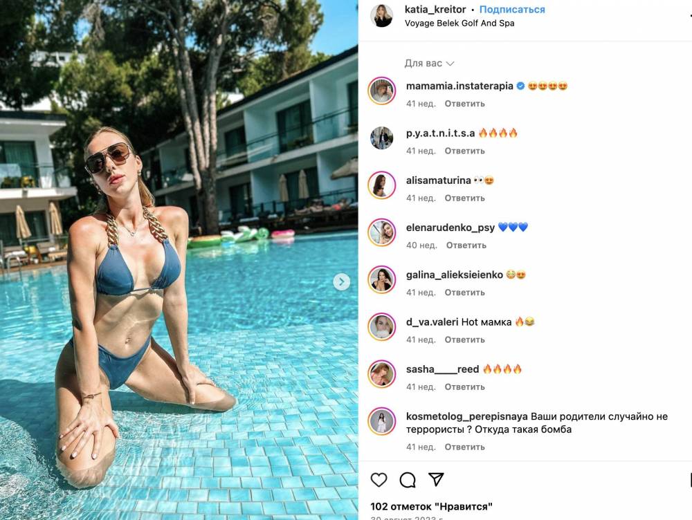 В серпні 2023 року жінка з дітьми знов у Туреччині. Відпочивають в 5-зірковому Voyage Belek Golf And Spa. Після цього восени психолог Крейтор відвідує Кельн та Париж.