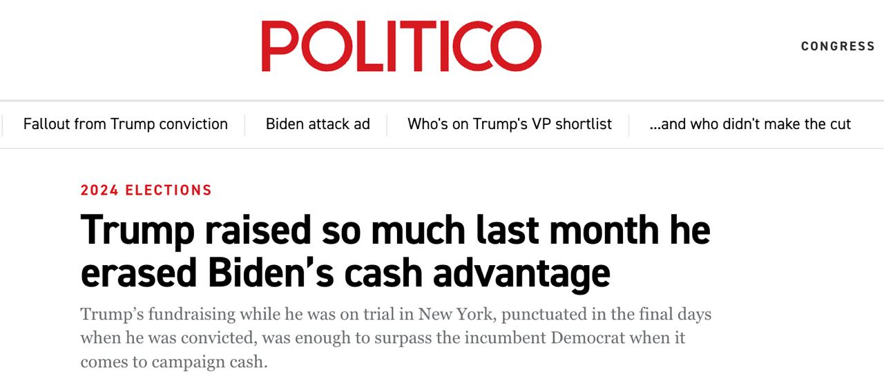 Politico: Трамп у травні перегнав Байдена зі збору коштів на президентську кампанію