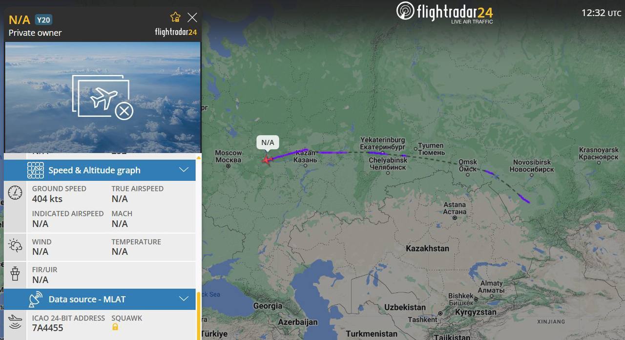 Декілька годин тому був помічений військово-транспортний літак Y-20A армії Китаю, який направлявся у Москву.