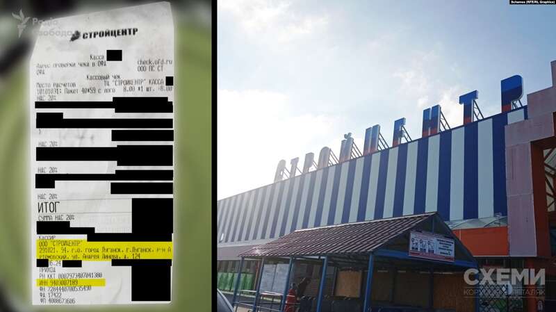 «Схеми» встановили, що після повномасштабного вторгнення саме ця компанія здійснює торгівлю у колишньому луганському «Епіцентрі»: на касових чеках вказаний податковий номер та назва згаданого ООО «Стройцентр».