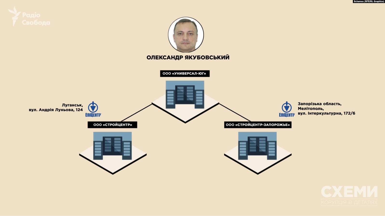 Таким чином, Олександр Якубовський володіє значними частками в компаніях, що торгують не лише в колишньому «Епіцентрі» в Луганську, а й в окупованому після 2022 року Мелітополі.