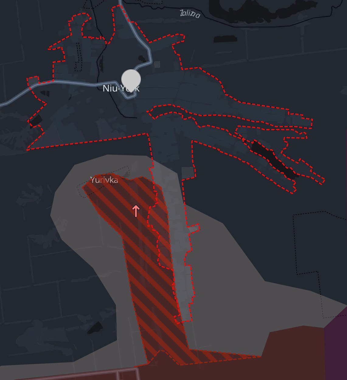Військовий паблік DeepState повідомляє, що російські війська просунулися за чотири кілометри на південь від Нью-Йорка Донецької області.
