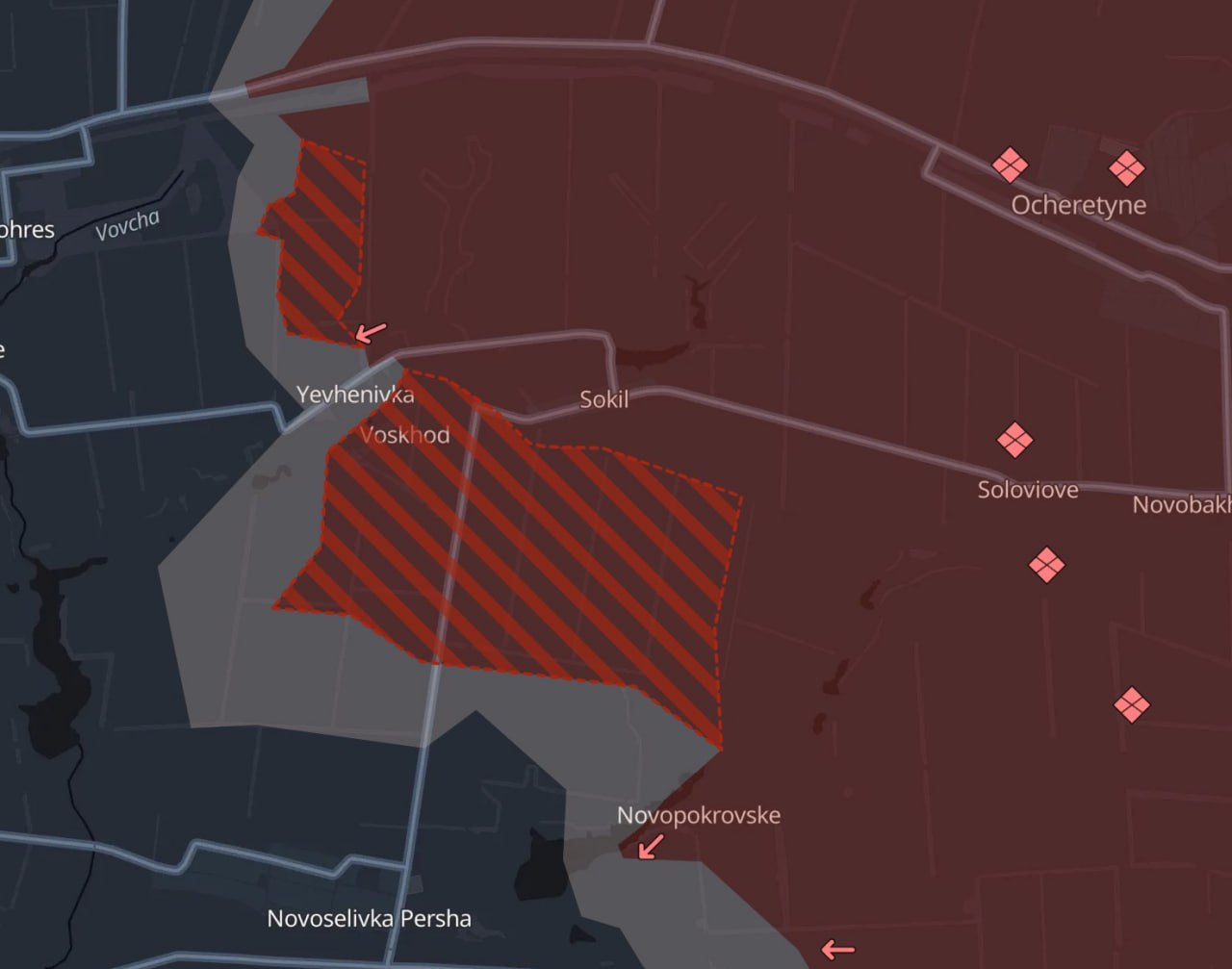 Військовий паблік DeepState повідомляє, що російські війська захопили села Сокіл та Восход на Покровському напрямку.