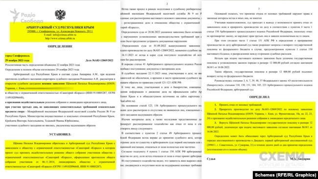 Водночас, журналісти знайшли рішення Арбітражного суду республіки Крим у Сімферополі, який розглядав звернення Наталії Щокіної. Вже після початку повномасштабного російського вторгнення вона просила визнати збори учасників ООО «Санаторий «Коралл» недійсними і ліквідувати підприємство.