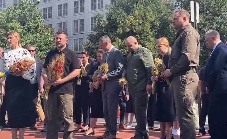 Перед початком саміту Зеленський з першою леді поклали вінки до пам’ятника жертвам Голодомору та зустрілися з місцевою українською громадою.