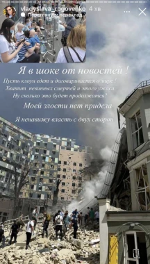 Українська блогерка з 223 тис. підписників, яка розвиває блог про психічне здоровʼя, бізнесвумен, Міла Бараєва написала в сторіс в instagram, що вбивство росіянами 8 липня людей у Києві, Кривому Розі, Дніпрі та Покровську є наслідком "політичних ігрищ".