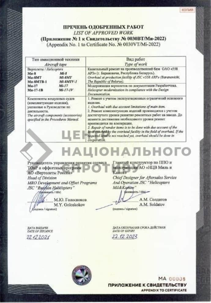 Повідомляється, що завдяки допомозі білоруського підпілля ЦНС отримав доступ до пошти одного з білоруських інженерів ВПК, а з тим - і докази того, що 558 авіаційний ремонтний завод у Барановичах виконує капітальний ремонт та модифікацію російських гелікоптерів Мі-8 та Мі-17.