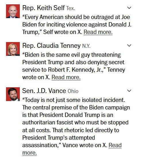 Ще 21 республіканець заявив, що причиною замаху стала "агресивна риторика" прихильників Байдена.