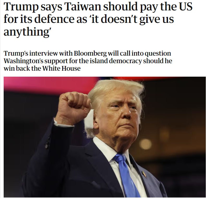 "Ця заява ставить під сумнів підтримку Вашингтоном острівної демократії, якщо він поверне собі Білий дім на президентських виборах у листопаді", - пише The Guardian.