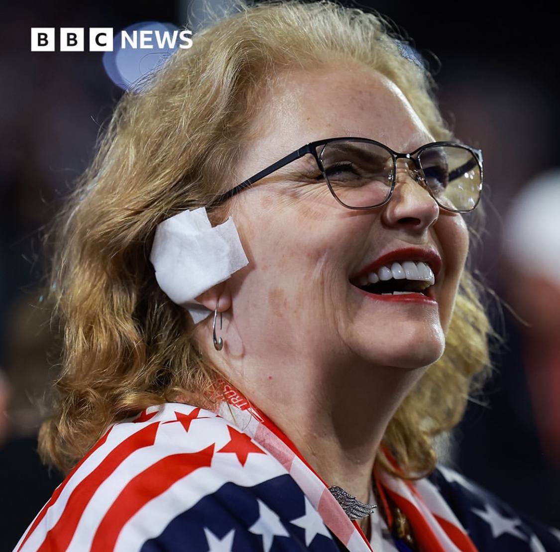 Кілька учасників національного з’їзду Республіканської партії у Вісконсині одягнули пов’язки на праве вухо на знак солідарності з кандидатом у президенти від партії Дональдом Трампом.