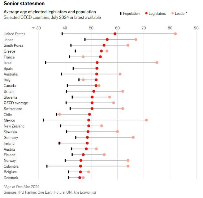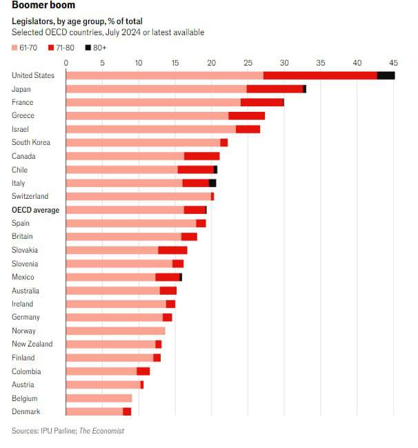 ▪️45% законодавців США старші 60 років, тоді як у середньому в OECD їх не більше 19%;