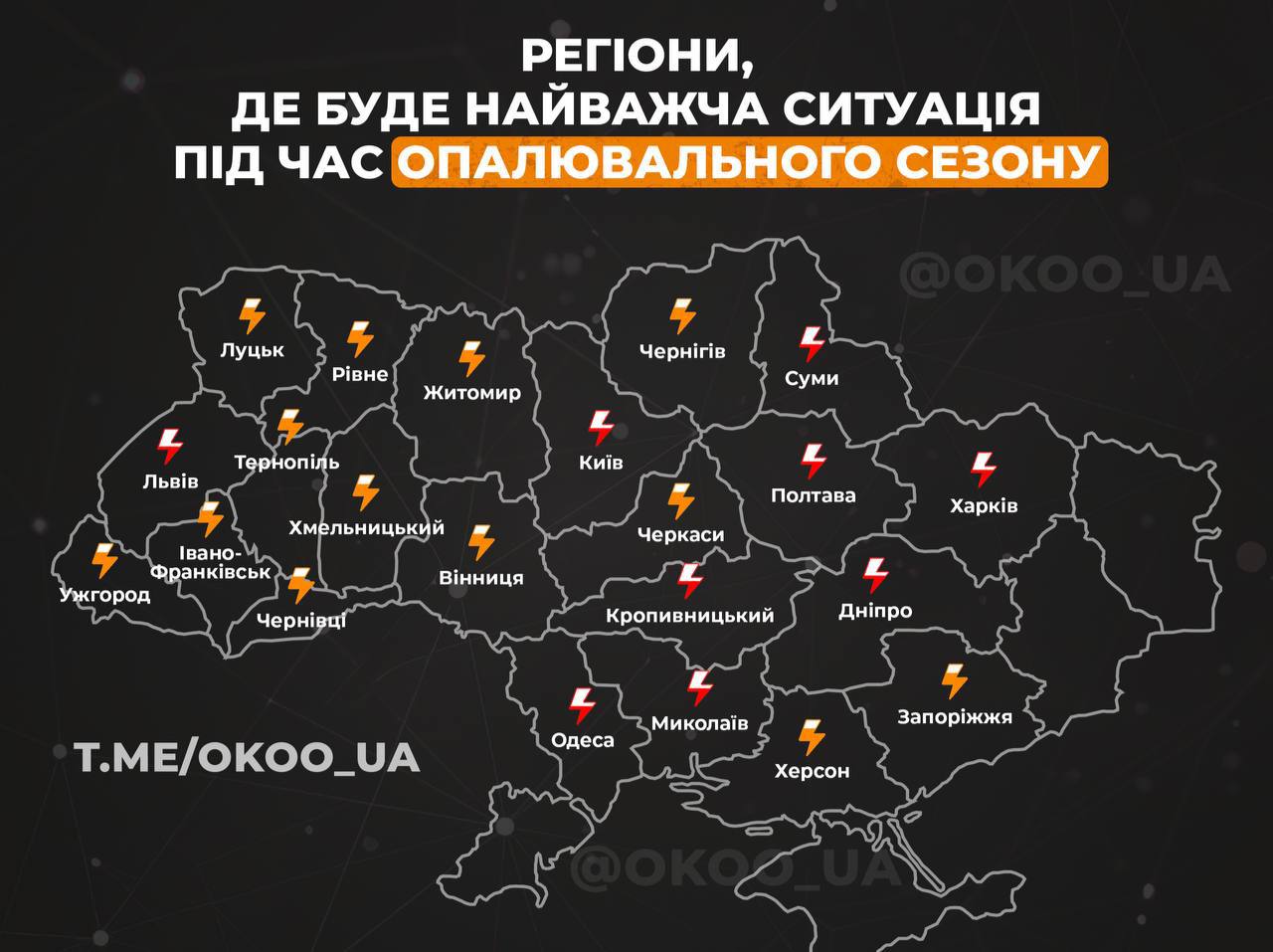 У мережі показали,в яких містах/регіона буде найбільше проблем з енергетикою під час опалювального сезону.