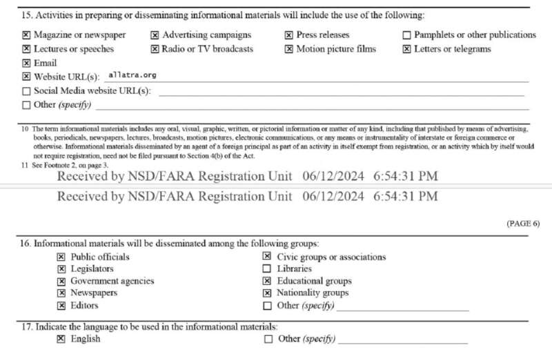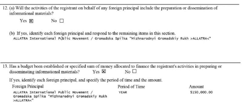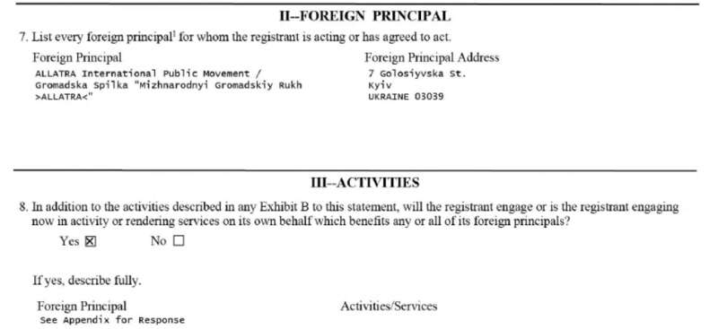 Крім того, починаючи з 1 травня, Егон Чолакян представлятиме організацію "АллатРа" на внутрішньому та міжнародному рівнях як зареєстрований іноземний агент відділу національної безпеки Міністерства юстиції США разом із діяльністю, пов’язаною зі зміною клімату та національною безпекою.