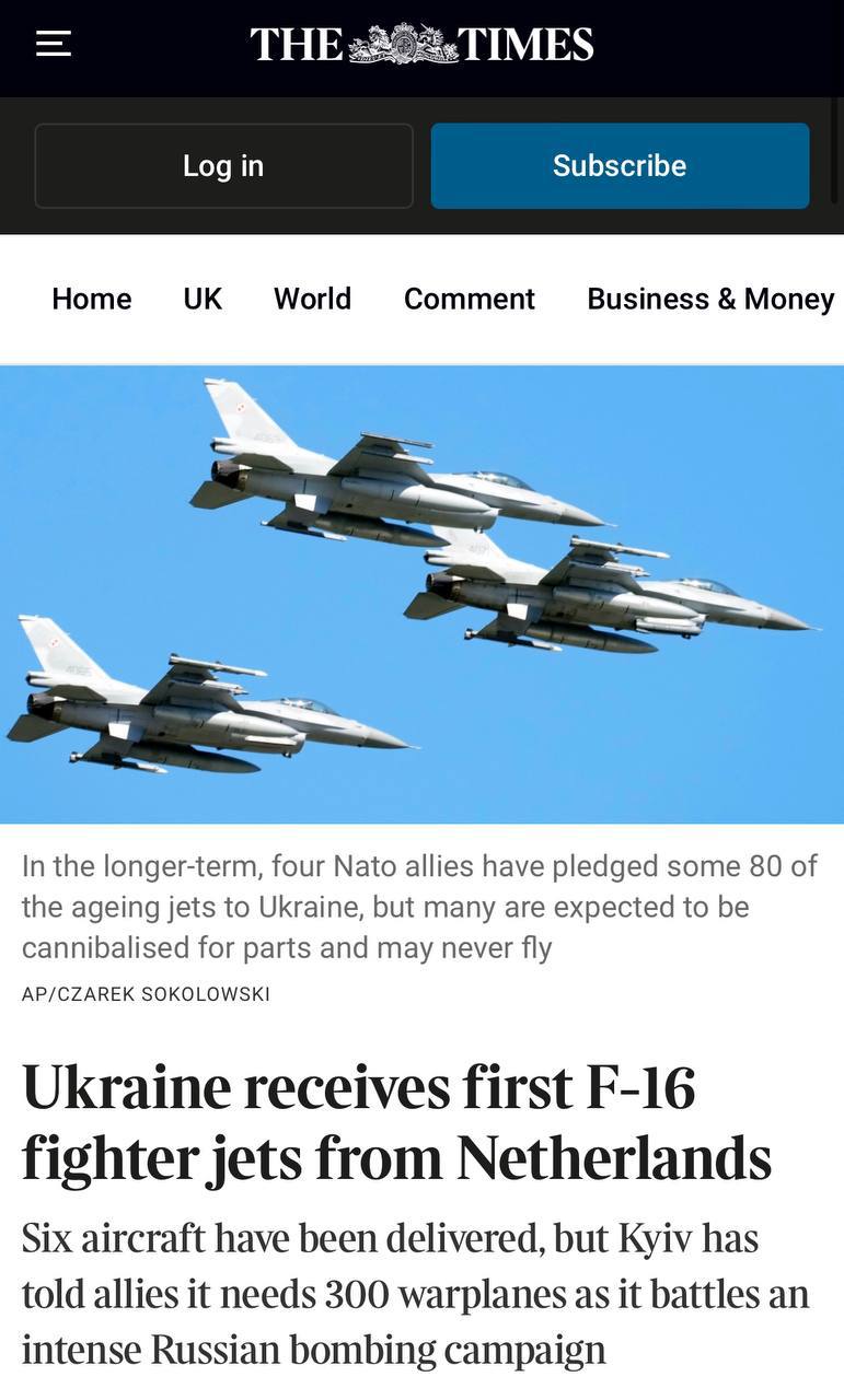 Україна отримала перші F-16 від Нідерландів, – The Times