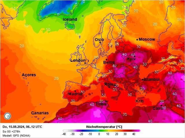 Судячи з карти, така екстремальна температура буде у Києві.