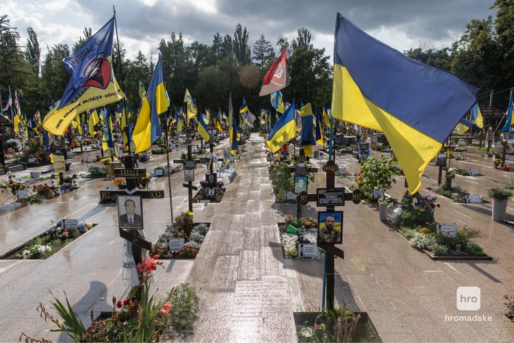 «Більшість з 27 цвинтарів Києва закриті, на них не ховають, — пояснює Скорик. — Є напівзакриті, де можна докласти труну чи урну до могили родичів. А з відкритих кладовищ найбільше Лісове, там є 800-метрова алея захисників. Їх кладуть по восьмеро в ряд. Колись і там місце закінчиться.