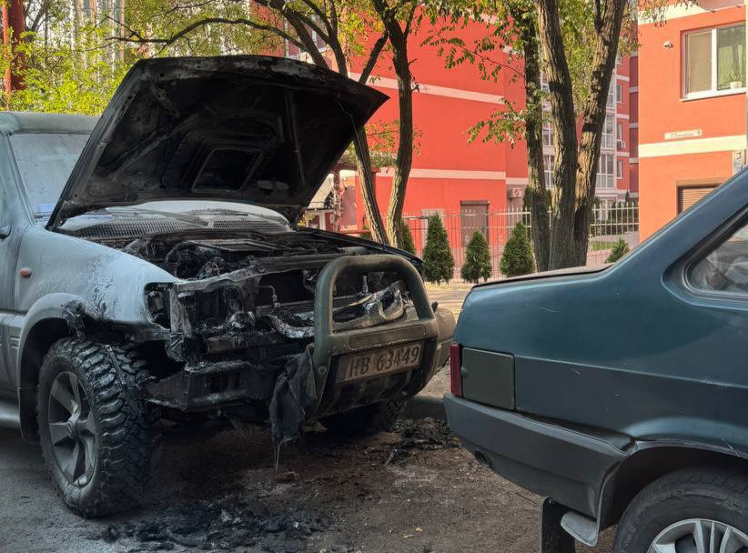 Підпал стався біля ЖК «Олімпійський» на бульварі Кобзаря. Невідомі облили автомобіль легкозаймистою речовиною та підпалили.