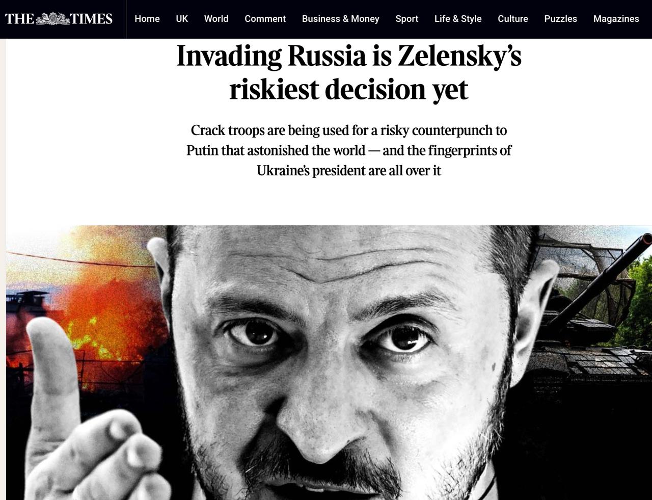 Видання називає рішення Зеленського атакувати Курську область "найризикованішим" за весь час війни. Цей наступ «застав зненацька» не лише Москву, а й Захід, який навряд чи схвалив би такі дії, якби Київ запитав його думку.
