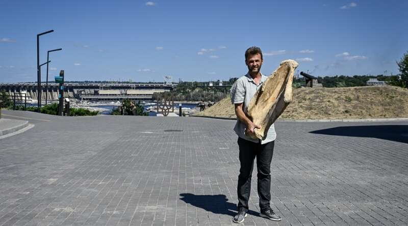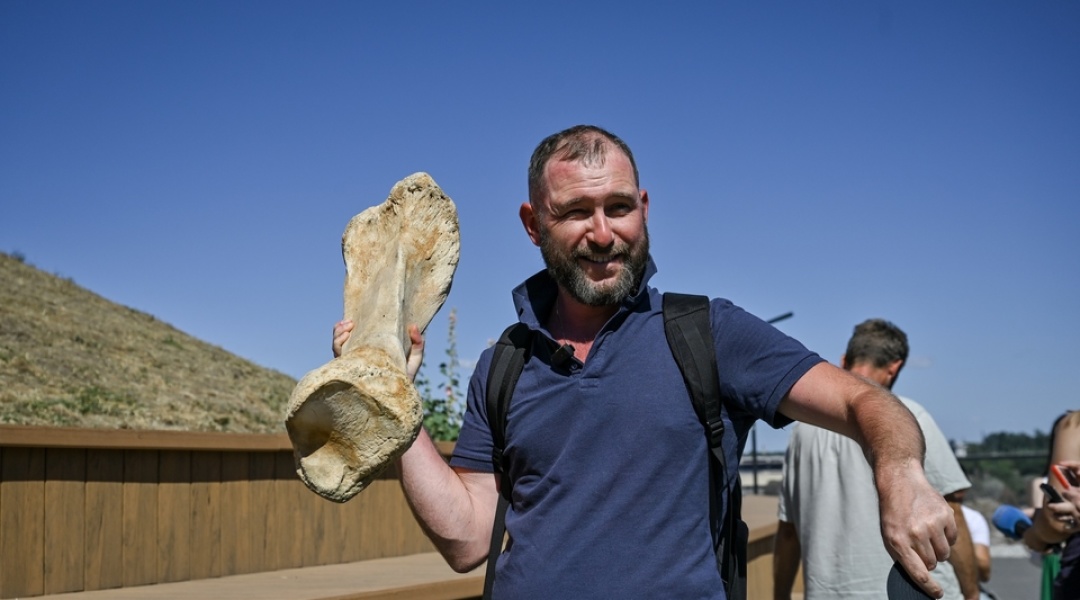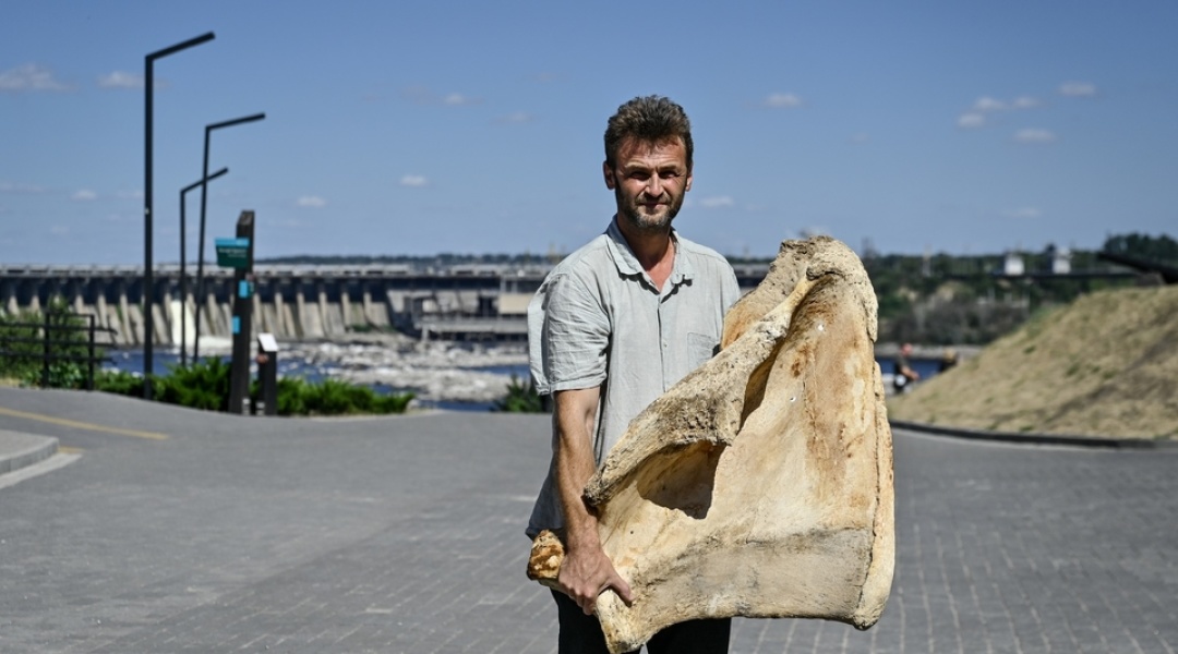 “Наприкінці липня цього року житель Запоріжжя Костянтин Неліпа звернувся до заповідника з інформацією, що він знайшов великі кістки тварини на околицях Запоріжжя після падіння рівня води. Ми виїхали на місце, подивились, визначили, що це кістки когось із мамонтової фауни. Це епоха палеоліту, одразу після льодовикового періоду. Забрали їх, бо вони були на поверхні, лежали не у воді, а на суходолі, могли зруйнуватися, привезли в заповідник та почали думати, що з ними робити”, - розповів в.о. завідувача відділу охорони пам’яток історії, археології та природи Національного заповідника “Хортиця” Михайло Муленко.