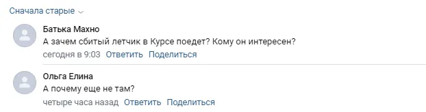 "І що він там робитиме?", "Сидітиме далі вдома і друкуватиме", "З вами, це в раю?", "А навіщо збитий льотчик у Курськ поїде? Кому він цікавий?", "А чому ще не там?" – пишуть у коментарях.