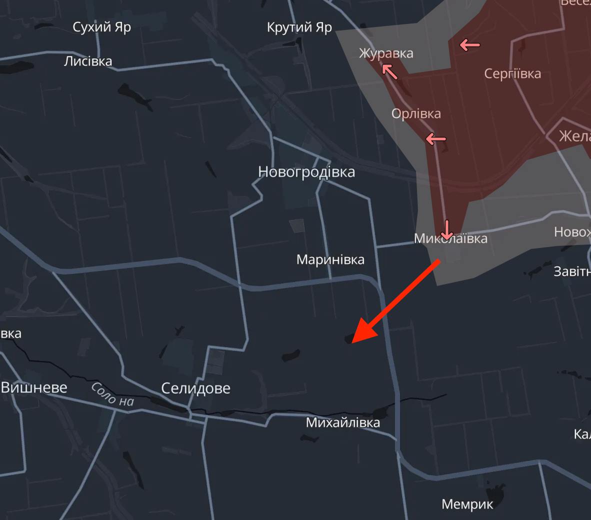 Росіяни на Покровському напрямку просунулися до міста Селидове та підійшли до терикону між селами Михайлівка та Маринівка.