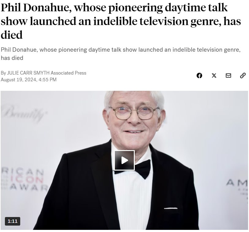 У США помер знаменитий телеведучий Філ Донаг’ю